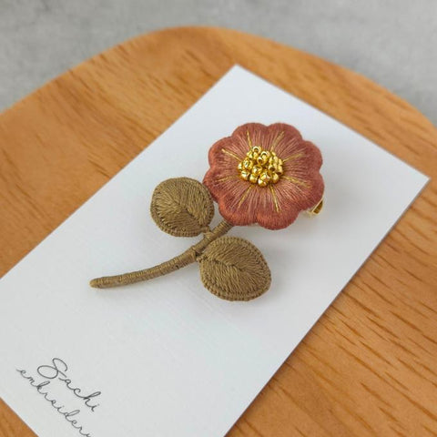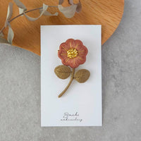 [sachi embroidery] 日本手作單朵花刺繡胸針,紅色