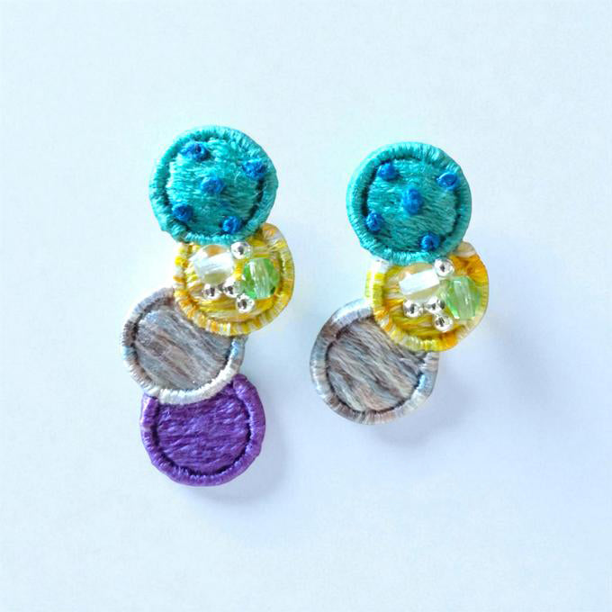 [one heart] 日本手作Candy Pop刺繡耳環 ,藍色 x 黃色