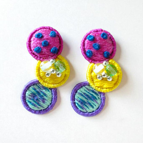 [one heart] 日本手作Candy Pop刺繡耳環 ,粉紅色 x 藍色