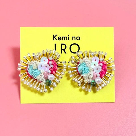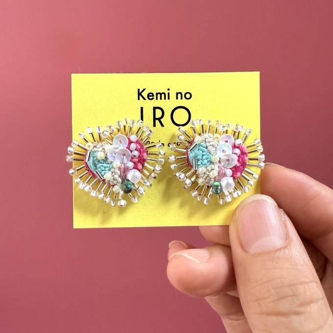 [kemi no iro] 日本手作心形亮片珠飾耳環,透明