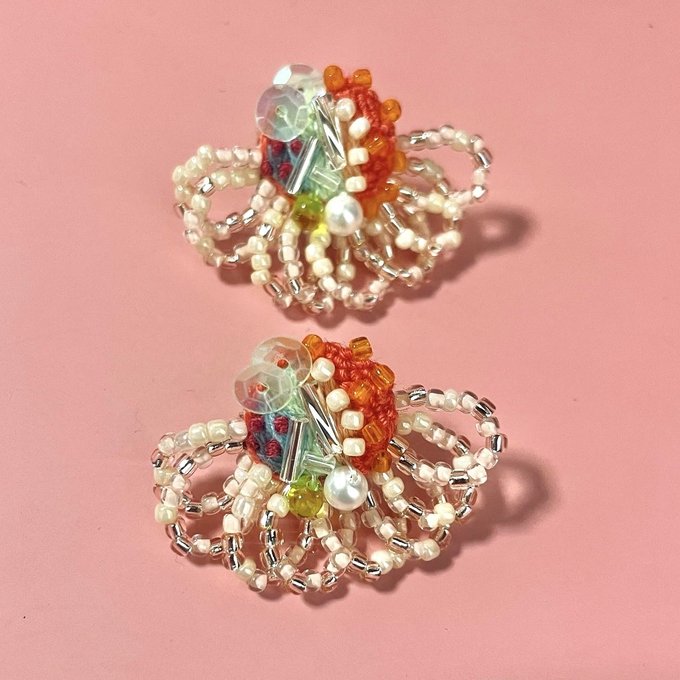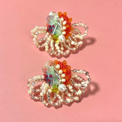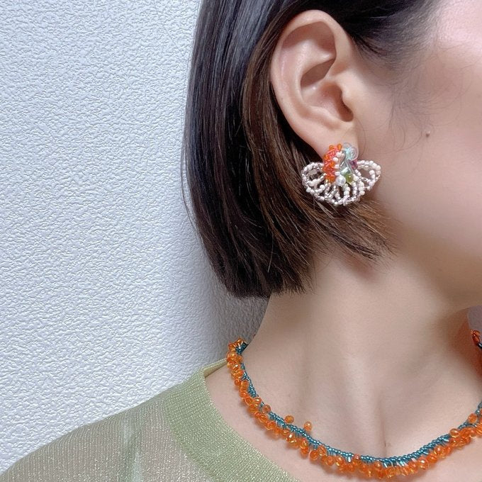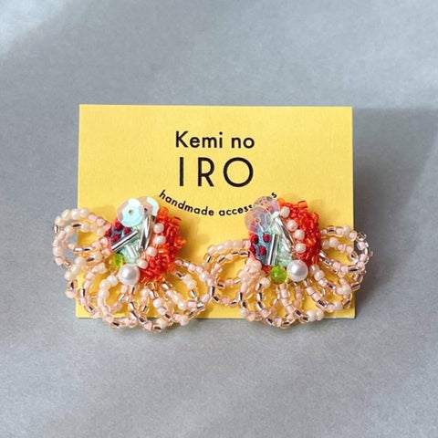 [kemi no iro] 日本手作心形亮片珠飾耳環,淡橙色 限定價