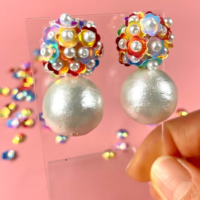 [kemi no iro] 日本手作亮片珠飾耳環,彩色 限定價