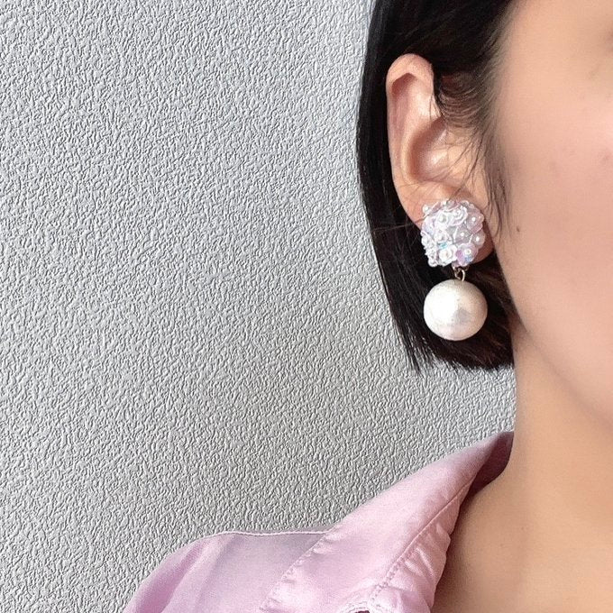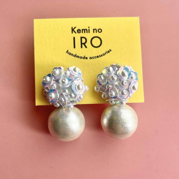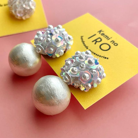 [kemi no iro] 日本手作亮片珠飾耳環,白色 限定價