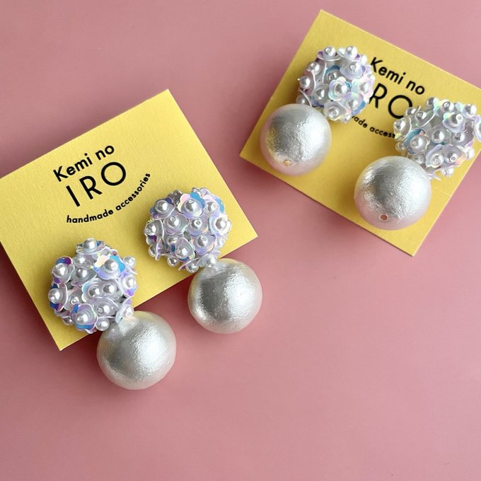 [kemi no iro] 日本手作亮片珠飾耳環,白色