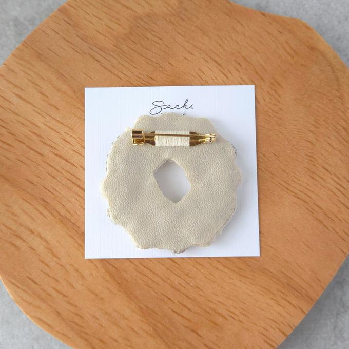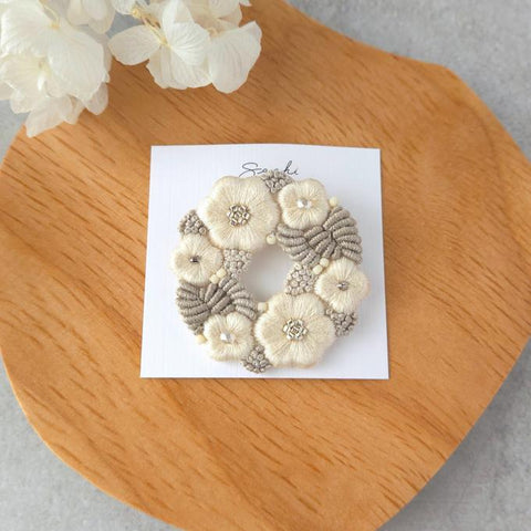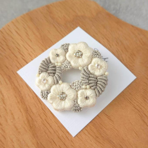 [sachi embroidery] 日本手作花環刺繡胸針,灰色