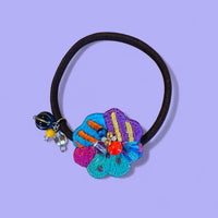 [one heart] Japanese Handmade Embroidery Colourful Flower Hair Tie, Purple x Blue
