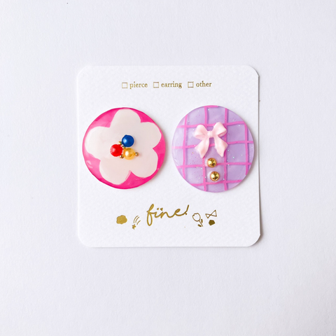 [fine!] 日本手繪樹脂圓形耳環, 紫色 x 粉紅色 限定價